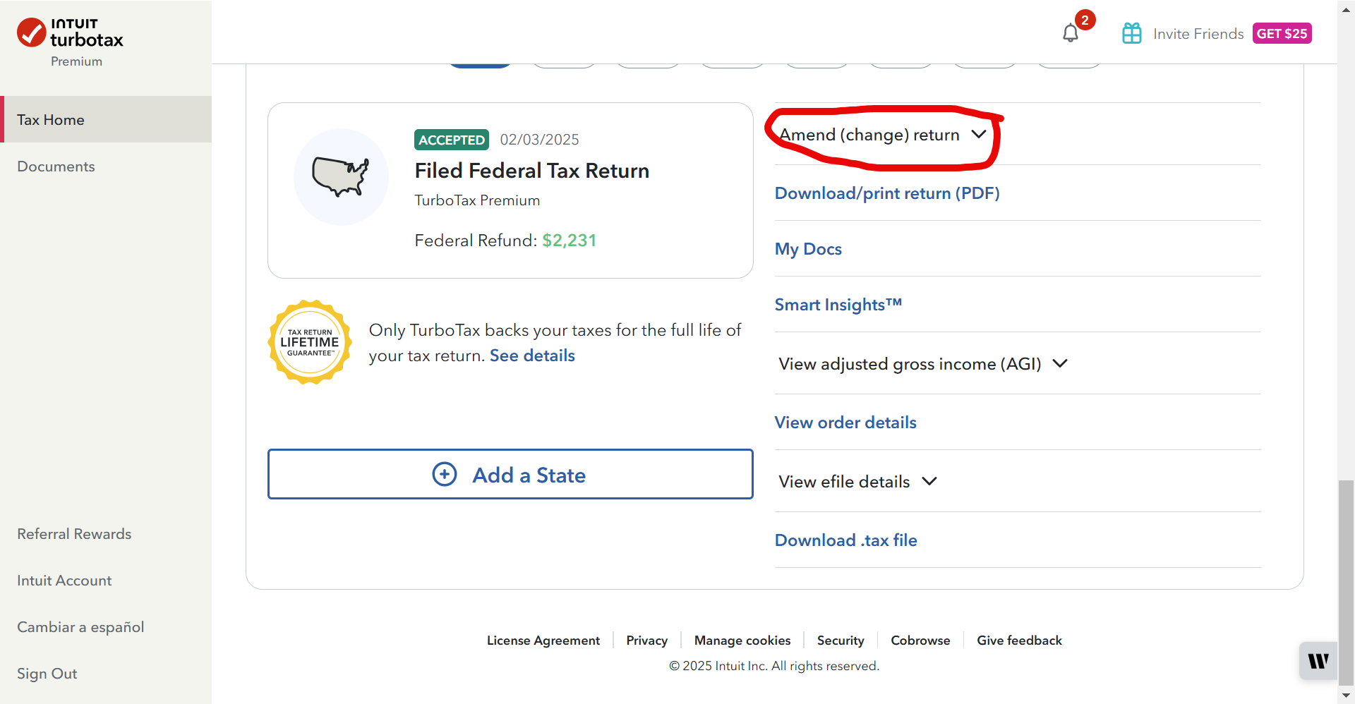 Now you have to wait until the IRS either rejects or accepts your return. If your return is rejected, you will be able to go into your account and make the necessary changes to your income and re-submit your return.