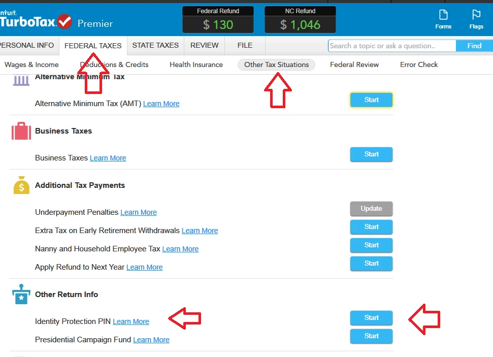.....a menu item in the "Other Tax Situations" tab