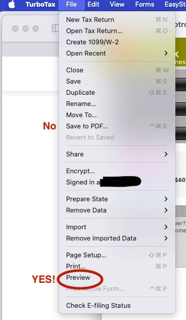 I've been using Turbotax for at least a decade.  I've got a very simple return that is ready to print.  Turbotax Premier 2024 is not letting me print.  There is no problem with my Canon printer.  I can print from Excel, for example.  My iMac operating system and Turbotax says my Turbotax application is up to date.