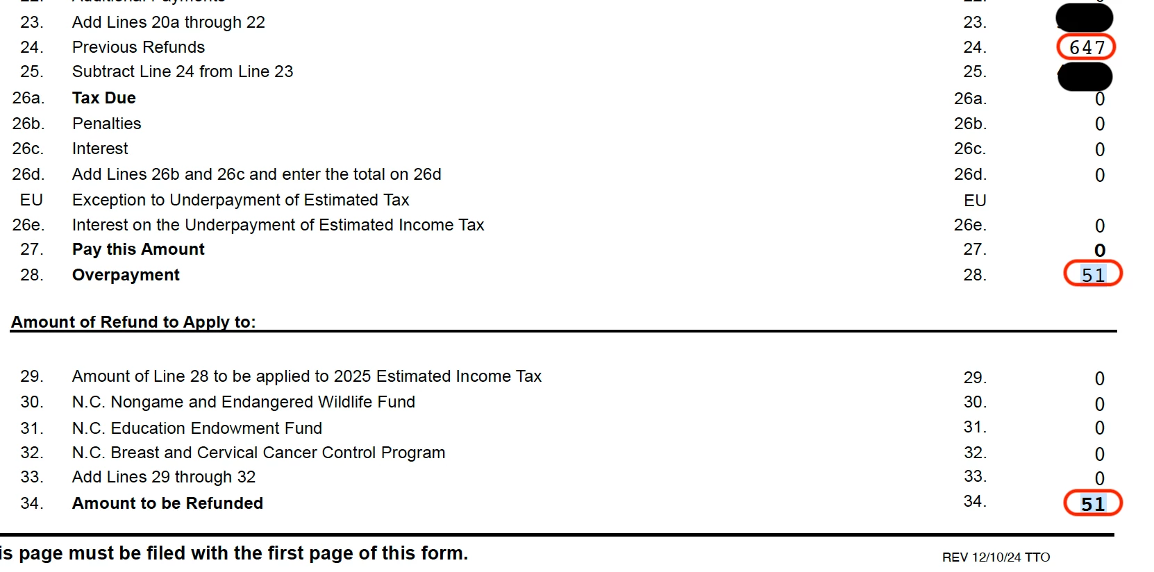 So with this concern, I just want to ensure that the state refund has not decreased from $647 to $51 but is indeed an addition to the original amount since it does not show in the TTO like it does for Federal. I hope I'm making sense.