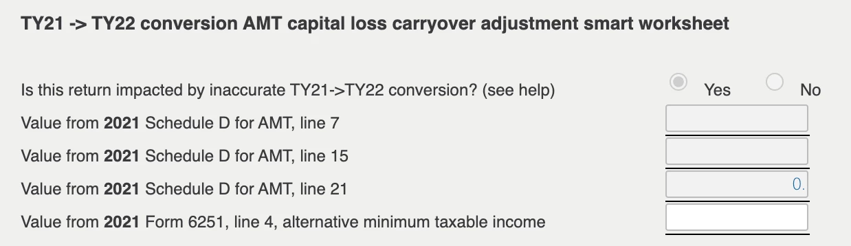 to clarify, by conversion I believe TTax is talking about a 2021--> 2022 capital loss carryover conversion