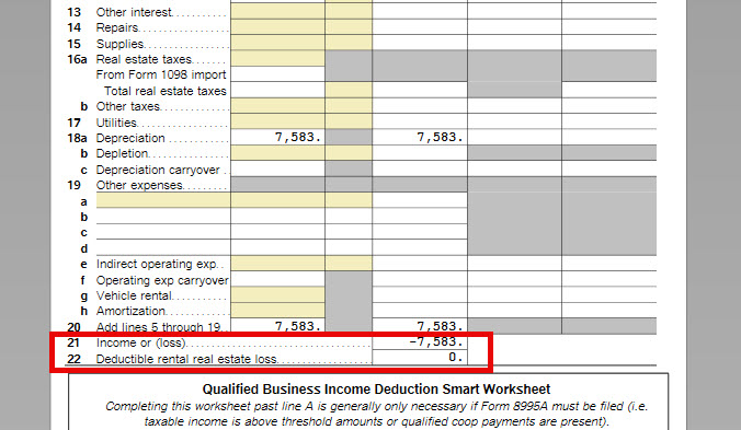 Loss that is caried over form the previous year is entered in the Rental Section