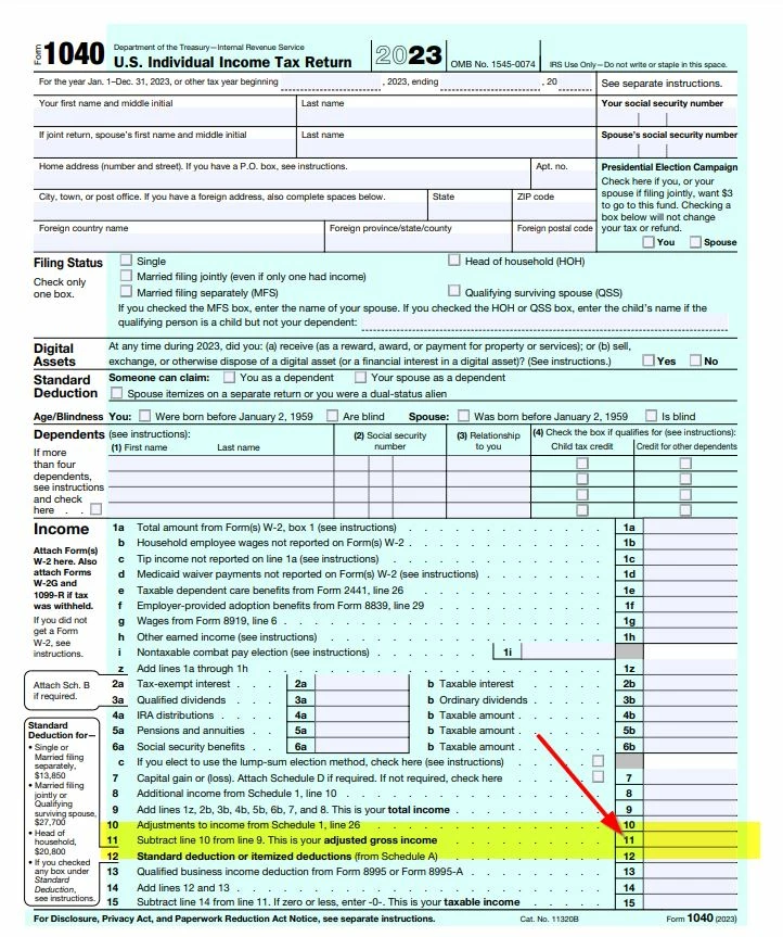 On IRS Form 1040 Line 11 is the Adjusted Gross Income.