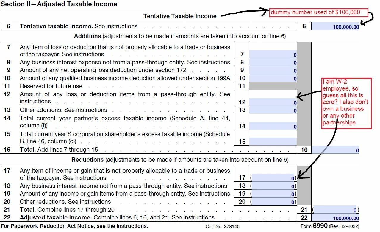 I downloaded the Form 8990 from the IRS website and am trying to fill it. I have attached some pictures and was wondering whether what I have filled in makes sense....