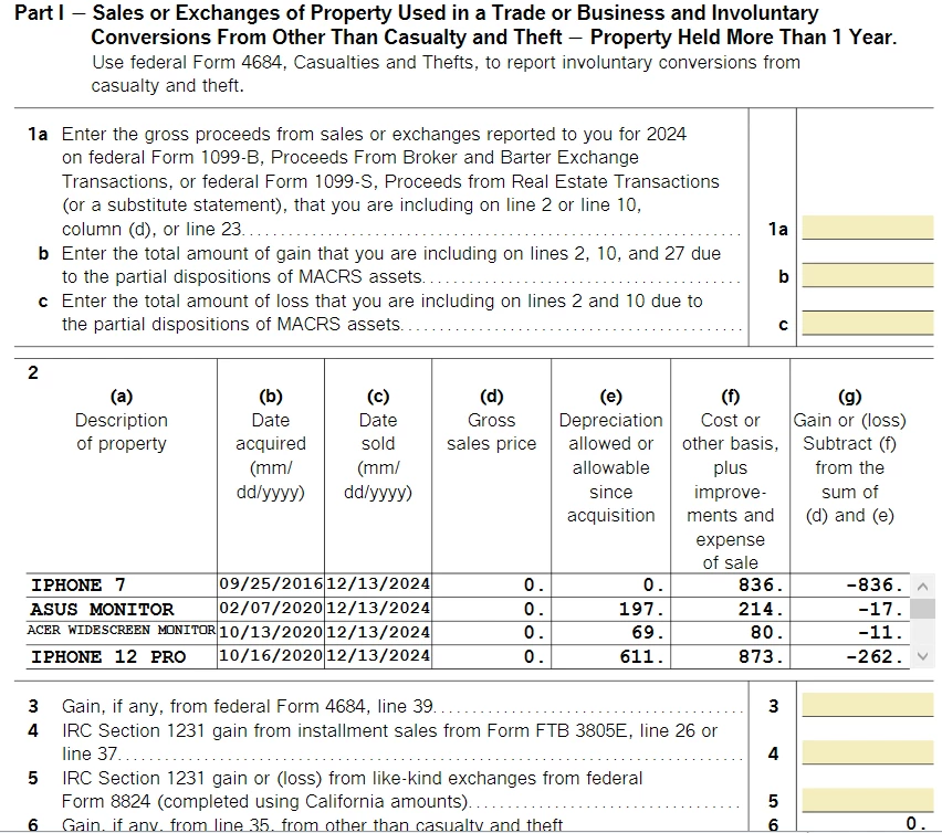 But Line 17 in California Schedule D-1, is 0. It looks like TT didn't calculate Line correctly.