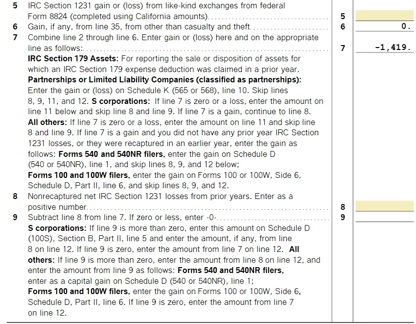 Check This Entry CA 565, p1-3: Line 8: Total Sched D-1 gain shouldn't be less than or equal to zero.