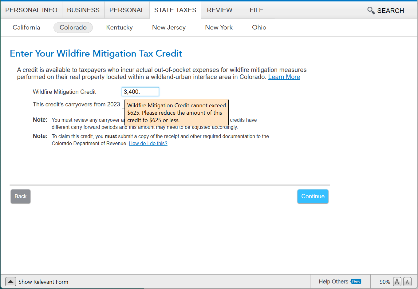 I believe this calculation is not being done properly. My mitigation was 3400 and when I look at the before and after on how much my state refund is, it adds the full 3400 to it and not 25%. Additionally I realize after there is an income limit for this which I hit, so why is TurboTax not flagging that income and why is it not calculating it to be 25%?