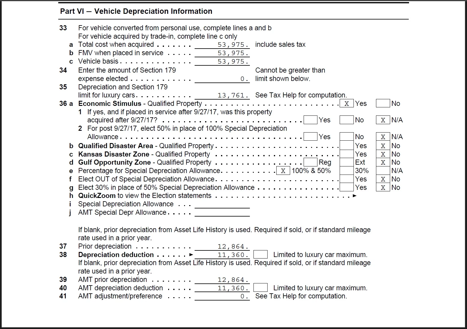 $12,864 prior depreciation was the Special Depreciation Allowance taken in 2022 when the asset was placed in service ($19,200 limit x 67% business use).