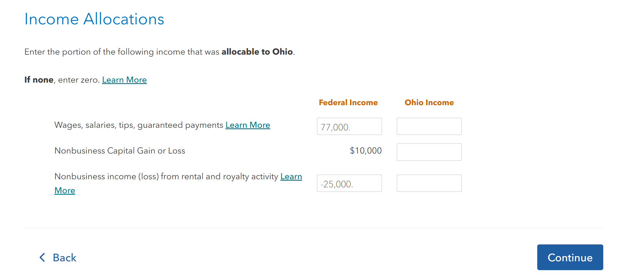 Exclude Texas income from Ohio return
