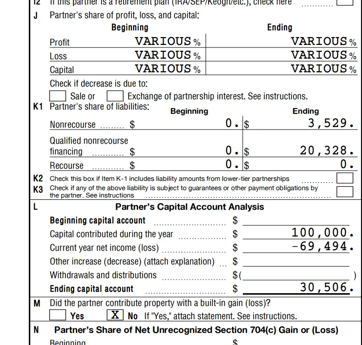 2. Second K1. Filled up only the values in Part I, nothing in part II. In Part III, only checked NRE (box 2) along with the rest of the boxes (5, 6a, 14 and 20). Entered the following entry for Section 199A