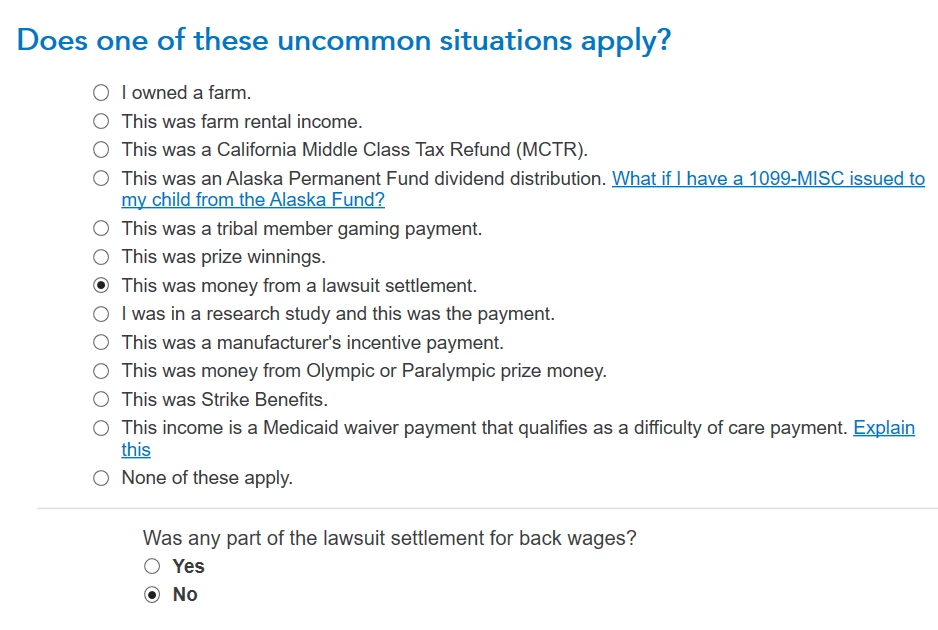 Hello,My name is Dave and I'm trying to input info about GM Legal Services. I'm answering all the questions the way I think I'm supposed to and it keeps taking me to a schedule C. It's wanting information thats not on the 1099-Misc. I've checked the support chats and there either out dated or the info that I'm reading isn't matching my problem. Example, It's telling me to check 2019 or 2020 which isn't available on my screen. Please , need Help