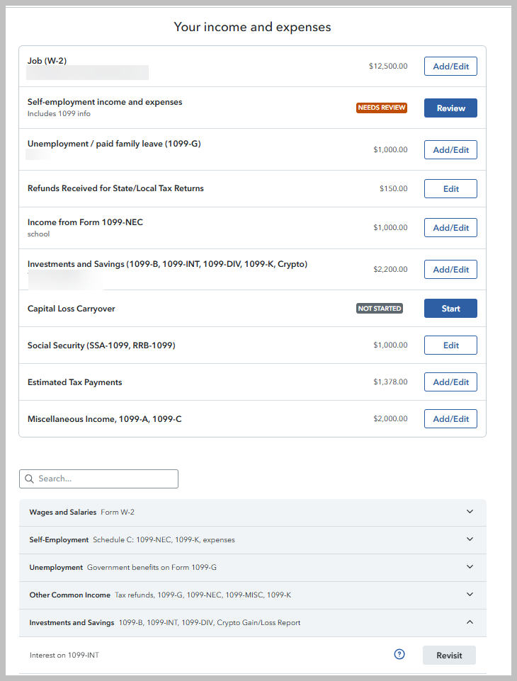 how can I correct income category taxes not yet filed