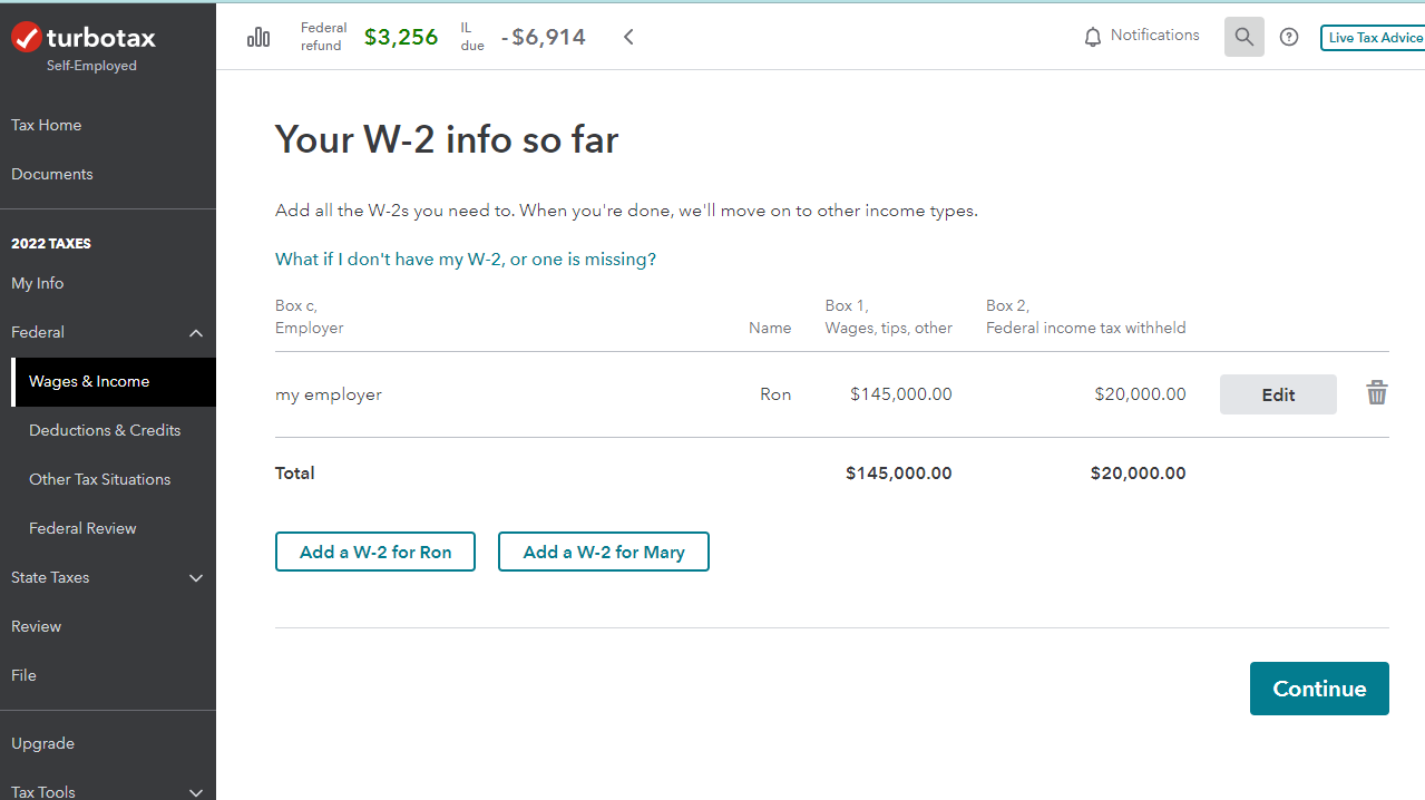 I need to delete my spouses w2 on my exile so I can complete my taxes. How do I delete it?