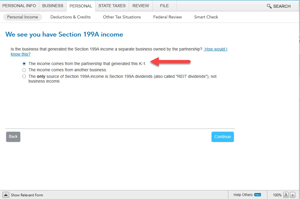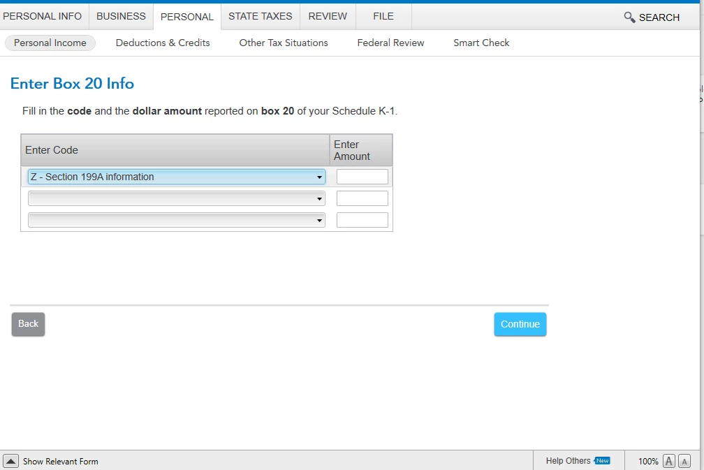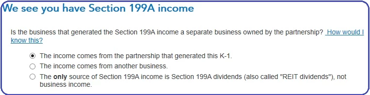 I don't see anything related to Section 199A income on the k1 form. What do I enter here?
