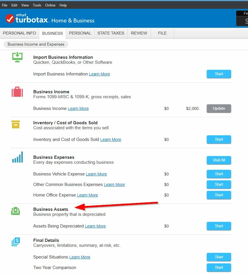 How to enter Depreciation for business EQUIPMENT / machines in TT Home & Business 2020- Desktop