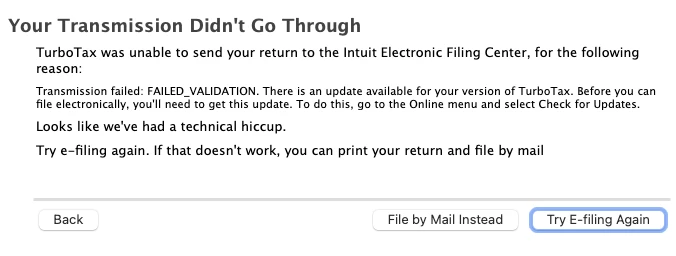 No this didn't help because some forums weren't available yet. The problem was with the program and I don't see how Intuit can think people aren't going to have technical problems. The automated system is useless for this kind of problem it just kept taking me in a circle. I searched the internet for 3 days trying different fixes that didn't work, yesterday I was going to go buy a new program and do it over then I found a patch from a problem in 2019 I downloaded it, did a manual update and within 5 minutes my forms were transmitted and accepted today. I'm sure I'll use Turbo Tax again next year but I hope they improve their help system maybe have a real person.