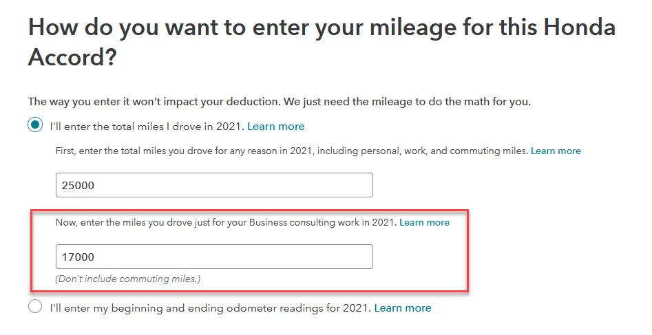 The easiest way to find this section in TurboTax is to search on "business expenses" and click the "jump to" link in the drop-down list, which will take you to list of business in your return. Start/Edit the related business then scroll down to the Vehicle section to enter or edit your vehicle information.