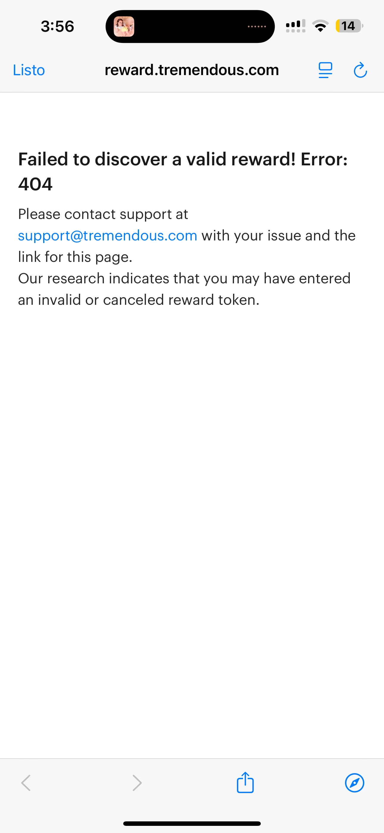 This is the message that appears when you open the link for referral cards.