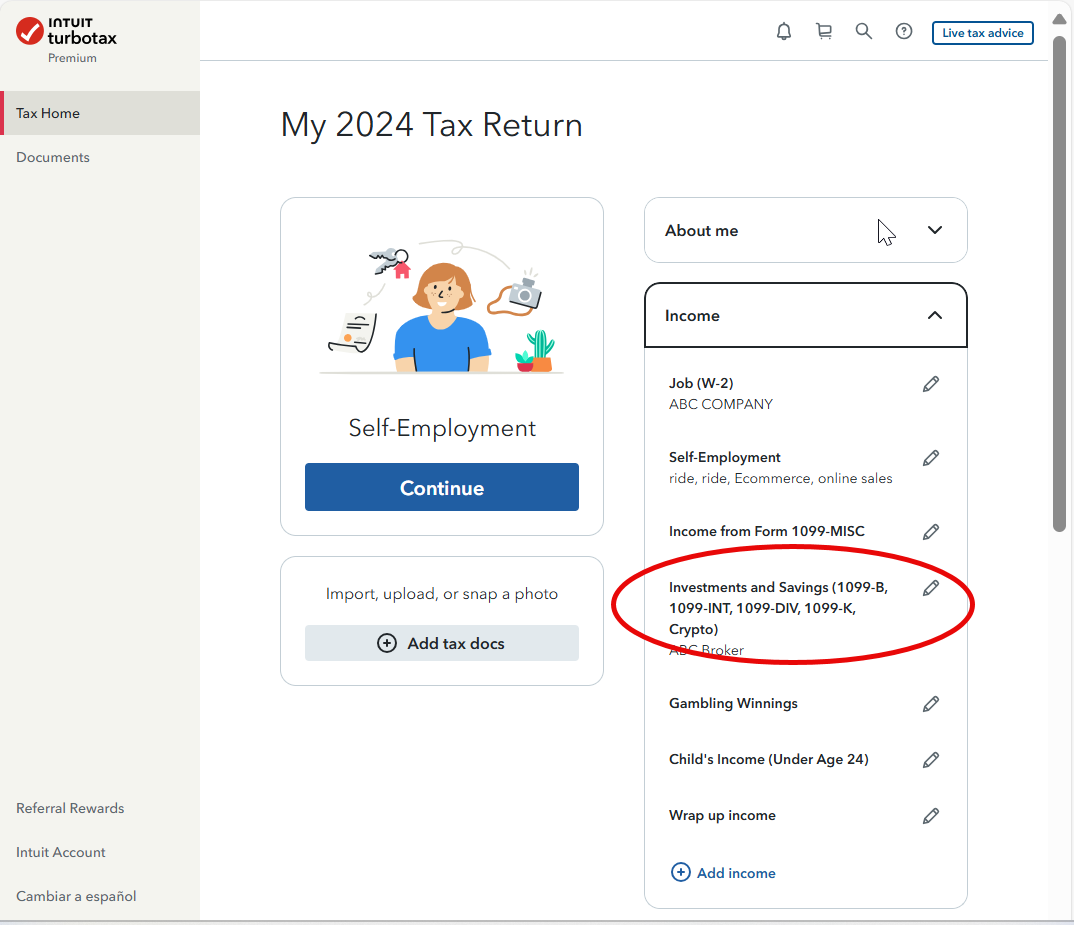 If you are working within TurboTax Online, review The Investments and Savings (1099-B, 1099-INT, 1099-DIV, 1099-K, Crypto) section, and then every single form or transaction that you have input.