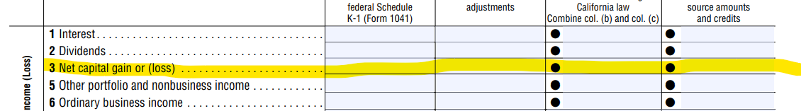 Can you please tell me how to find the total capital gains and losses on my K-1 (541) and there is an amount on line 14D-other ……aggregate gross receipts.