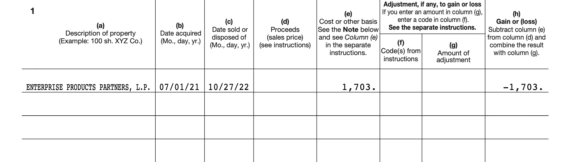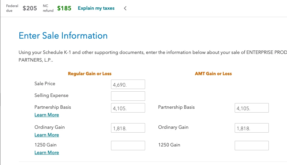 Please follow these instructions. Incorrect entries can result in entering the sale twice or otherwise incorrectly. Also see the sales schedule that was included with the k-1
