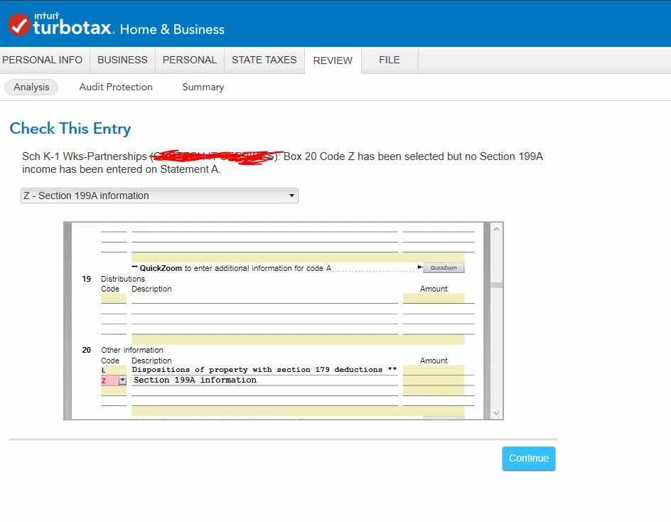 The thing it wants me to change is the Z selection of box 20 on my K-1.