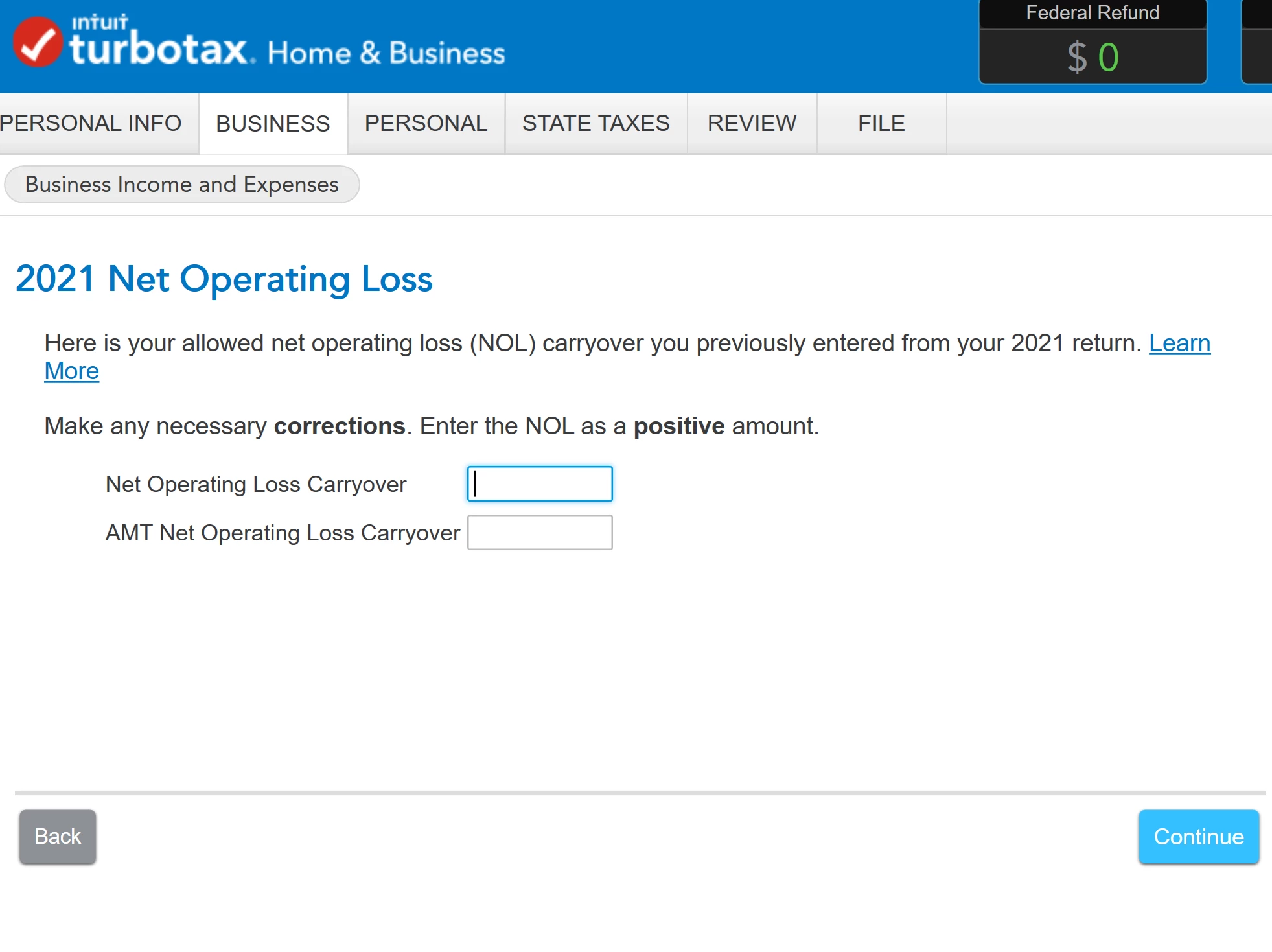 Should I just find this on my 2021 return and enter it? I'm not carrying the 2021 NOL back at all.