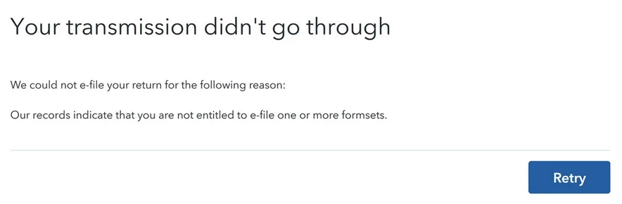 Our records indicate that you are not entitled to e-file one or more formsets
