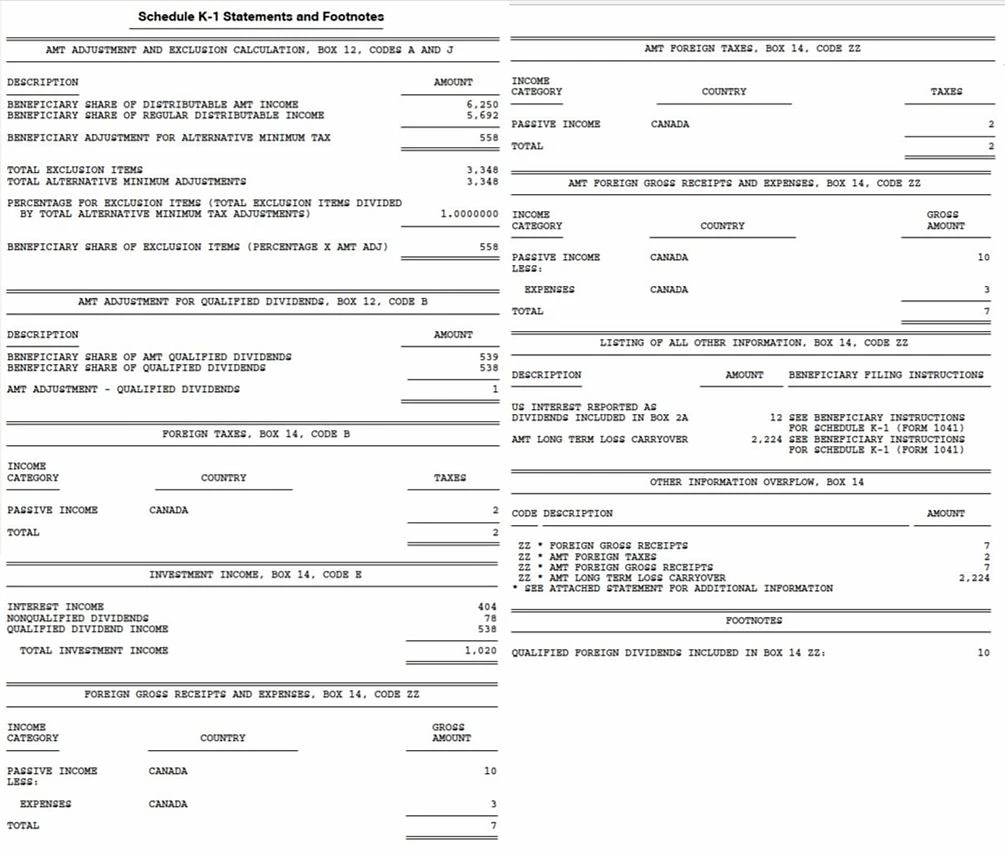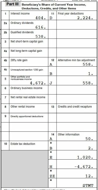 Schedule K-1 Form 1041 questions