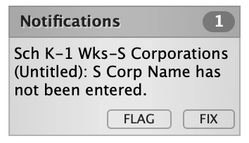 I think this is a bug in TurboTax. I went ahead and filled out bogus information for the "S Corporation" it was asking me about, then deleted the Form 1120S, and the notification went away. But it keeps coming back.