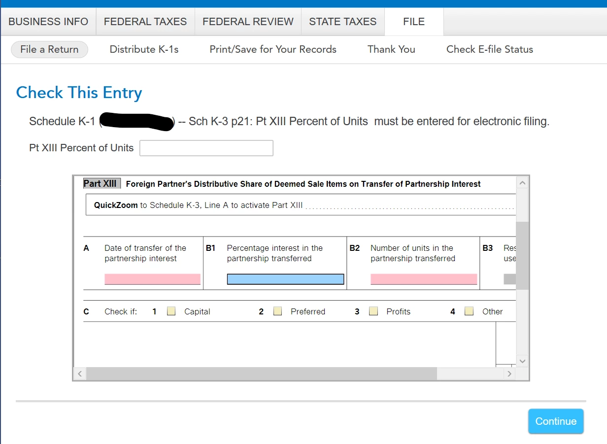 For some reason, TurboTax business 2022 requires Schedule K-3 part XIII "Foreign Partners Distributive Share of Deemed Sale Items on Transfer of Partnership Interest" to be filed when submitting electronically.