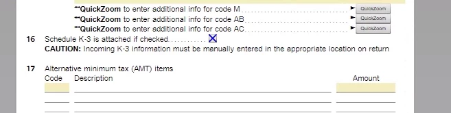 It seems all my K-1s in 2023 are including K-3s even if there is only US income. Turbotax Business still doesn't ask about Box 16 and if you check the box on the Forms view, it doesn't allow you to put any additional information.