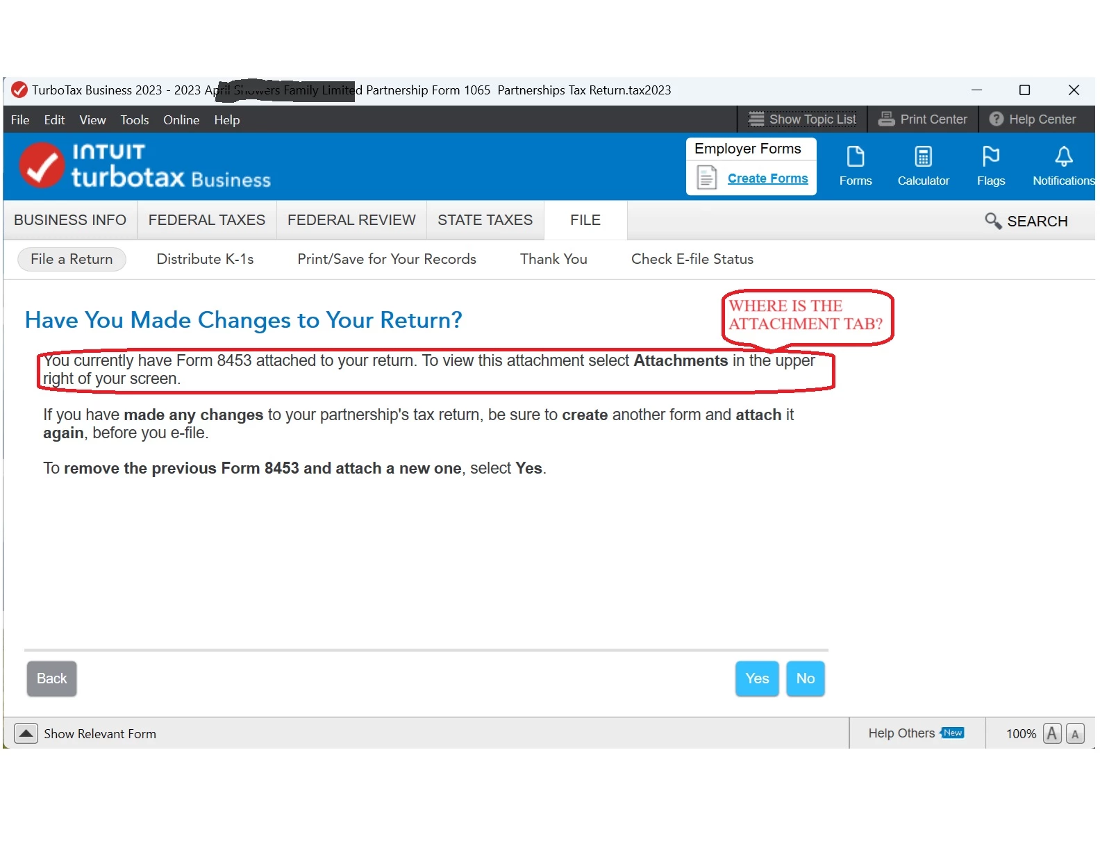 It says "to view what will be sent with the return, select Attachment in the upper right of your the screen." The problem is I don't see "Attachment" option in the interface.