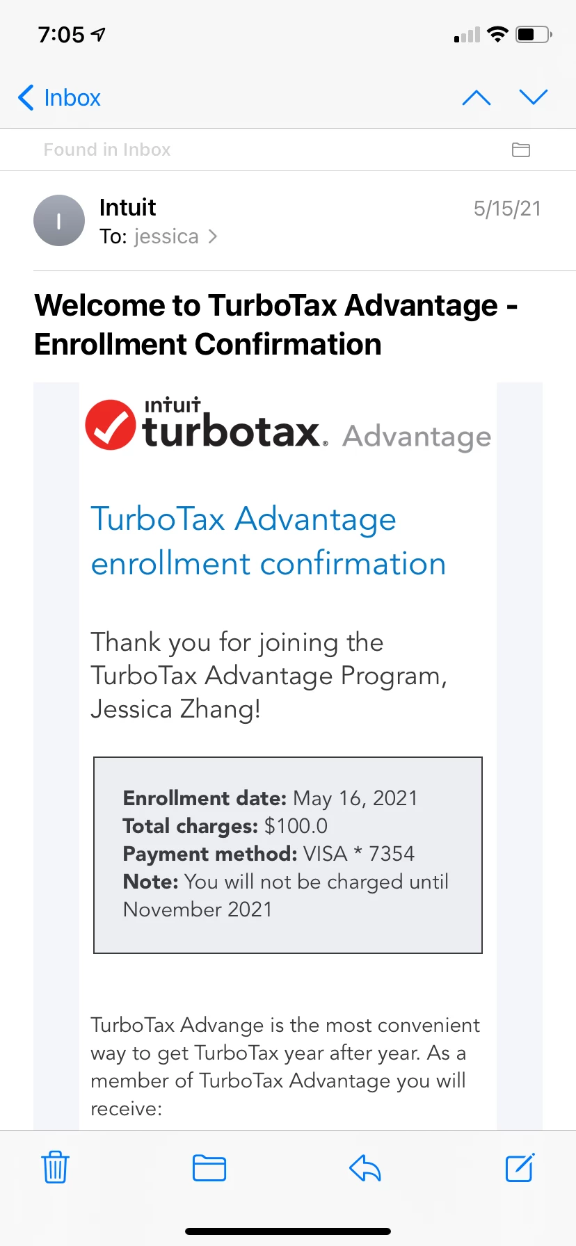 It is what it said won’t charge it until next year. But it appeared on my credit card now. Can you cancel that charge for now? We can pay in November next year.