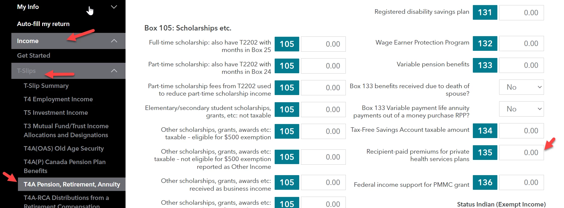 I have X amount of dollars on box # 135 on my T4A and want to enter but I am unable to get to box number 135. What do I do?