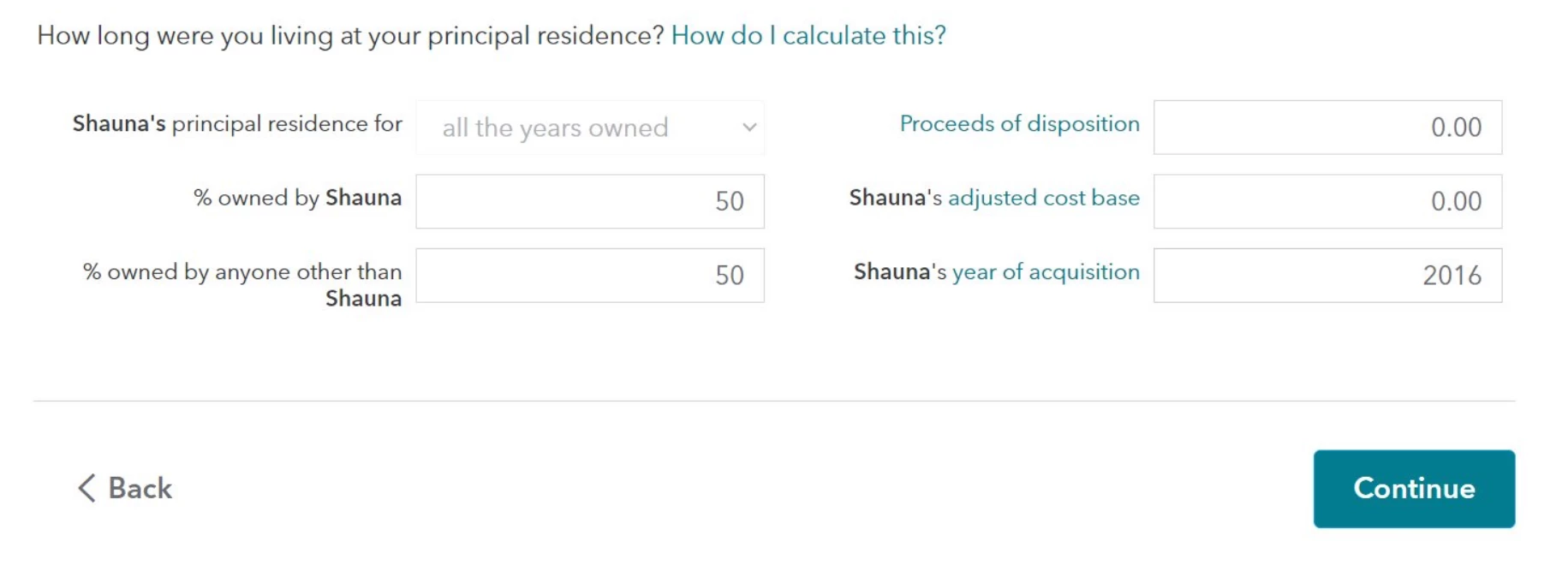 However, when I proceed through the next questions about who the home is sold to, and years owned/lived in - it spits out the summary as follows: