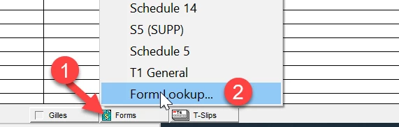 Once inside your return go to the bottom left side of the screen where you will see the Forms icon and click on it.