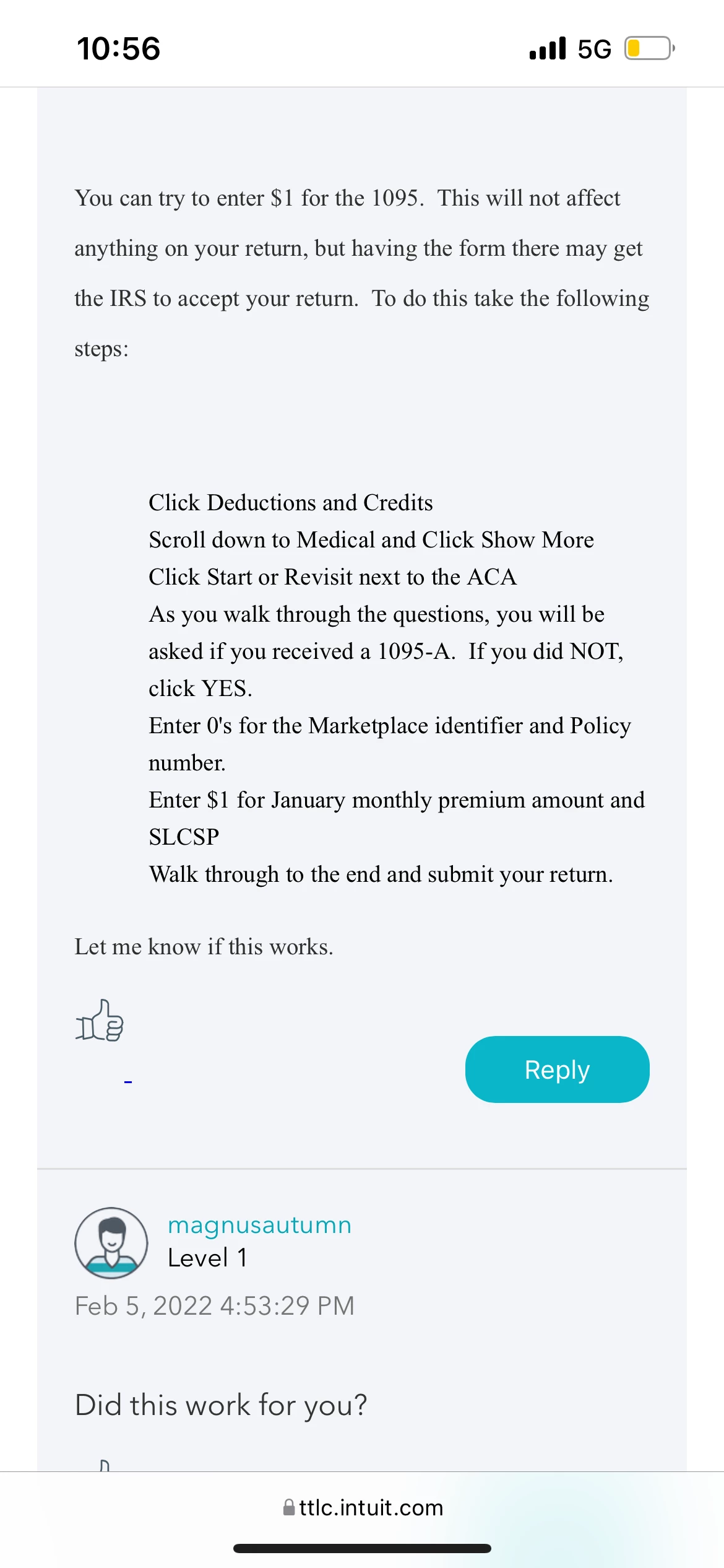 Did you receive your refund or did it get delayed. I’ve tried filing mine today and it keeps getting rejected as well. I received my 1095 c I’ve never had a 1095 A because my insurance was always through my employer.