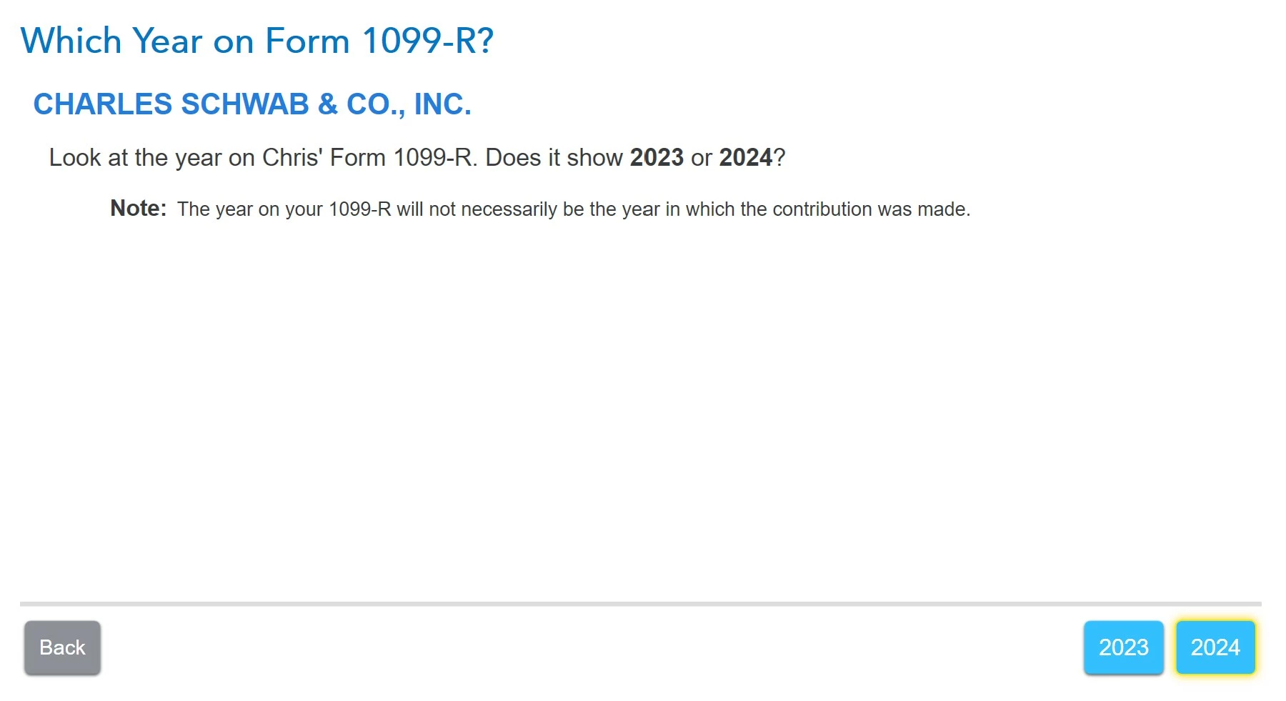 2. Wife contributed $4,400 to a traditional, before 01/01/2024. It was not recharacterized, and she is not covered by a retirement plan at work. No excess IRA contributions before 2023, no nondeductible contributions to her IRA. Not a repayment of a retirement distribution.