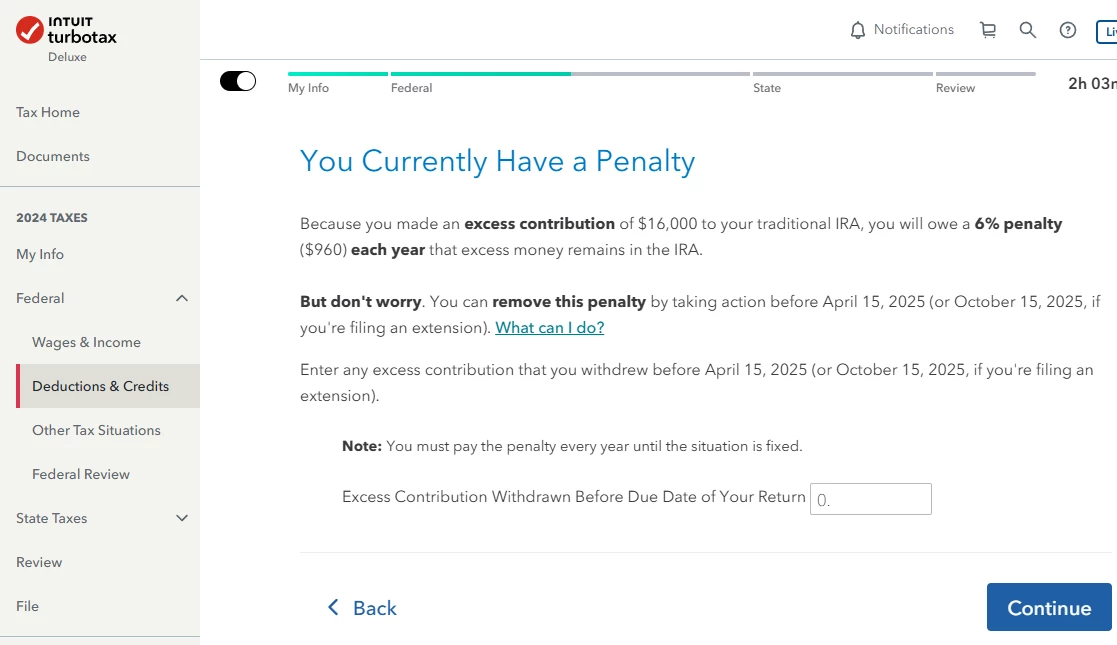 In 2024, I contributed the max possible amount to my pre-tax 401k, which is $23,000. Turbotax is trying to tell me that I have an excess contribution of $16,000 and will have penalties. I don't understand where this is coming from. I very clearly entered $23,000 which came right from my W2.