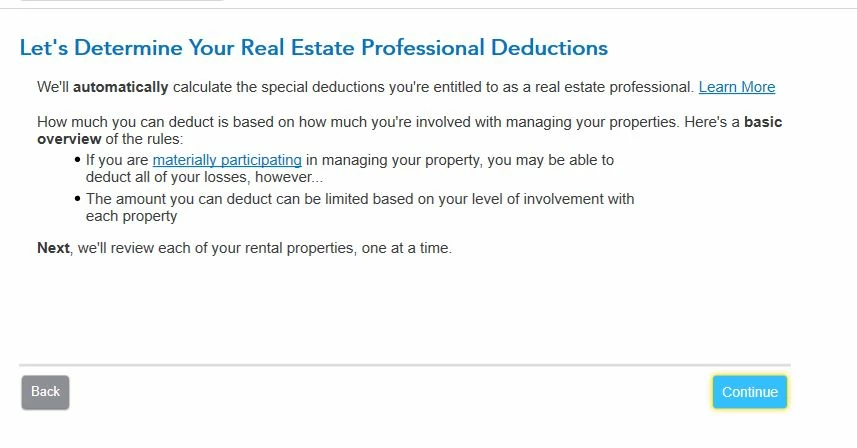 I work a return with Sch E rental loss. Wife work as a real estate professional was selected. but how come the rental loss does not offset W2 income? Do I miss something to click?
