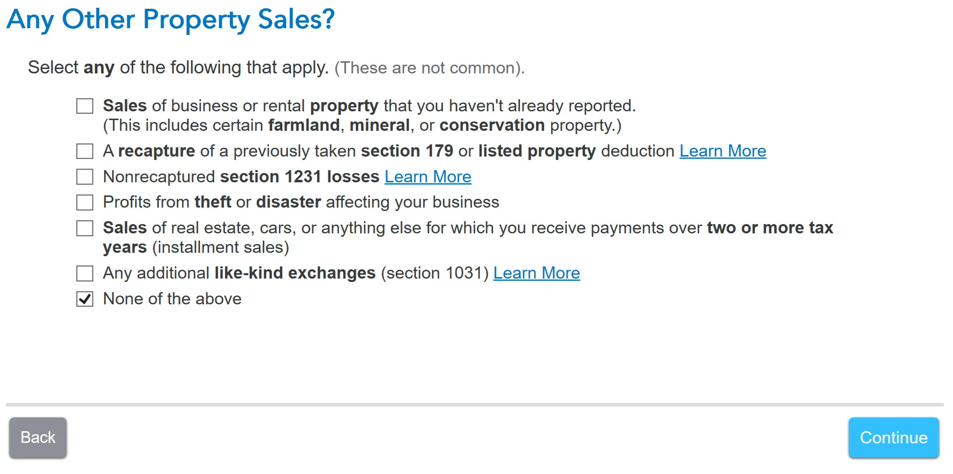 Under "Vehicle Expenses" for Business "A" I checked box "I stopped using this vehicle in 2024. And entered the date that Business "A" was sold.