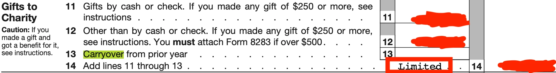 In the "Gifts to Charity" section, what does the "Limited" mean here? Does it mean I have some charity donation deduction that can be carried over to the next year? Thanks.