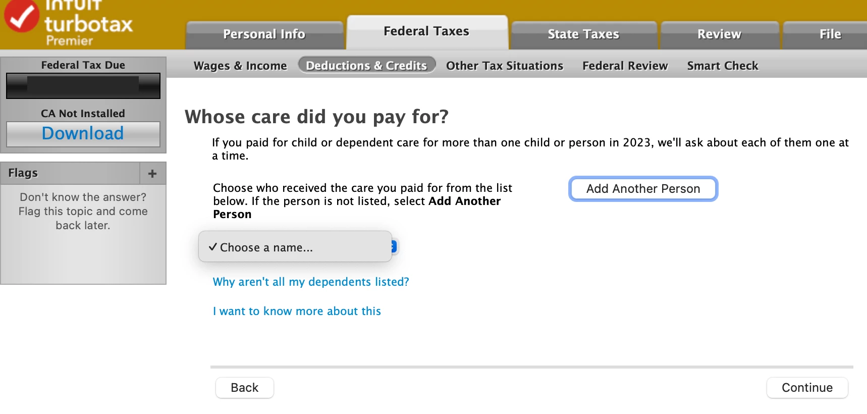 * in this page, clicking "Add Another Person", this takes me to the same form in "personal info" section editing dependents, I tried to remove the dependent and re-add the dependent. The drop down does not include the dependent.