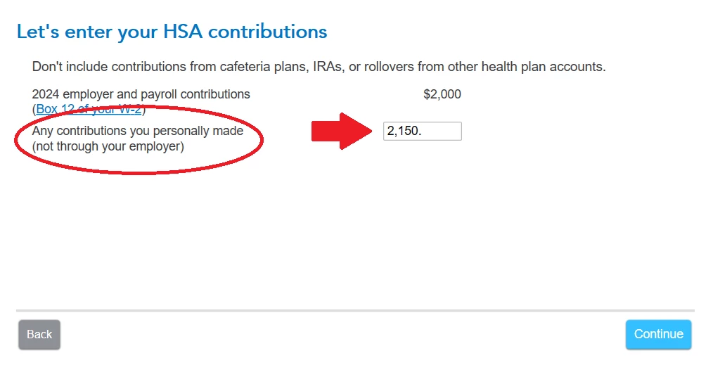 - "Did you put money into an HSA in 2024?" select "Yes"