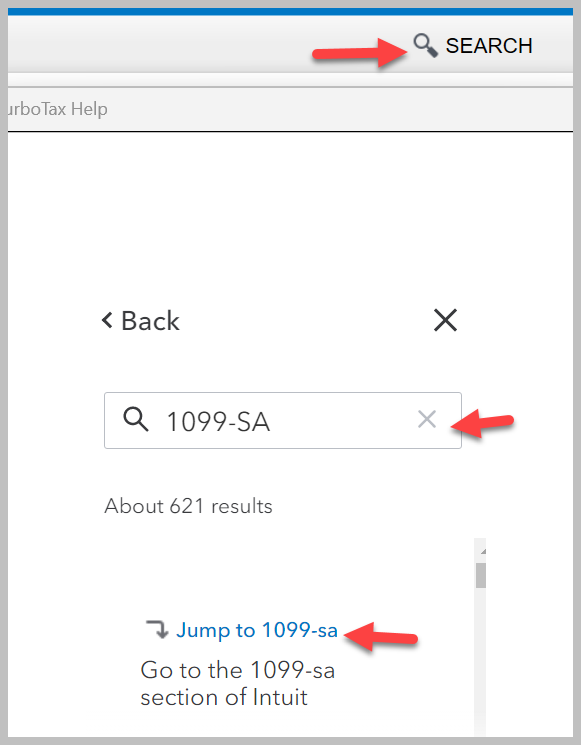 Navigate to the 1099-SA section by typing "1099-SA" in the search bar at the top right of your screen.