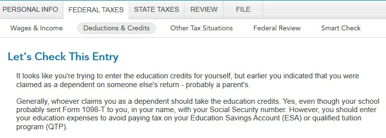 My tax return: I entered her 1099-Q first in my tax return and then the 1098-T, including additional expenses such as room and board etc. The program informs me of the following verbiage:
