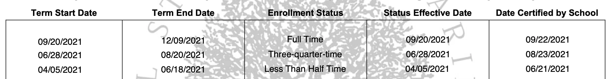 With this information can you help me and see if I was considered a full-time student for 5 months for the year 2021?