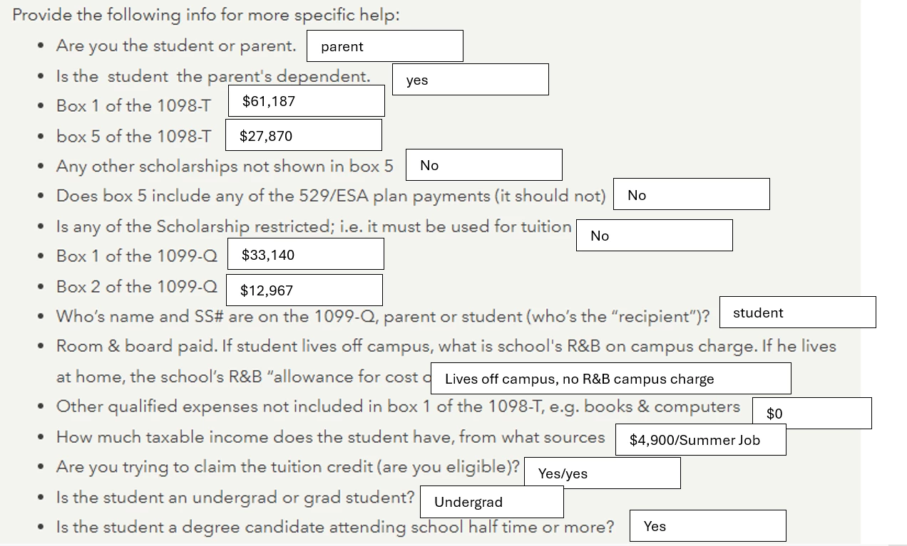 * The 1099-Q is only an informational document. The numbers on it are not required to be entered onto your (or your student's) tax return. The interview is complicated and it's easy to make mistakes. Avoid it if you can and you can.