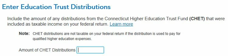 Connecticut tax return form on Education Trust Fund Distributions